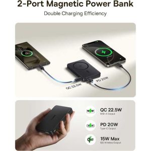 این پاوربانک با ترکیب شارژ بیسیم سریع، اتصال مغناطیسی پایدار و پورتهای پرسرعت، گزینهای ایدهآل برای کاربران آیفون و دستگاههای دیگر است. طراحی سبک و قابلیت حمل آن، این محصول را به همراهی مطمئن برای سفرها و استفاده روزمره تبدیل کرده است.