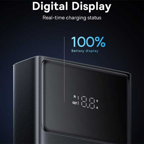 یک نمایشگر LED واضح روی بدنه تعبیه شده که درصد دقیق شارژ باقیمانده را نشان میدهد. این ویژگی به شما کمک میکند تا همیشه از وضعیت انرژی پاوربانک مطلع باشید و برنامهریزی بهتری برای شارژ دستگاههای خود داشته باشید.