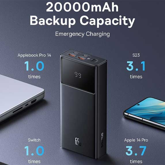 مهمترین ویژگی این مدل، پورت USB-C با توان خروجی 65 وات است که از استاندارد Power Delivery (PD) پشتیبانی میکند. این قابلیت امکان شارژ سریع لپتاپها و دیگر دستگاههای سازگار را فراهم میسازد. به عنوان مثال، میتواند یک لپتاپ را از 0 تا 51 درصد در تنها 30 دقیقه شارژ کند.
