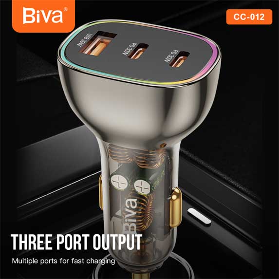 شارژر فندکی خودرو Biva CC-012 یک آداپتور سه پورت با توان بسیار بالا و قابلیت شارژ همزمان چندین دستگاه ارائه شده است.