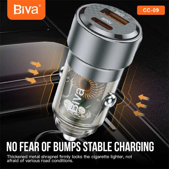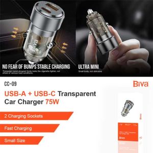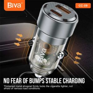 شارژر فندکی خودرو Biva CC-09 یک آداپتور پرتوان دو پورت با طراحی زیبا و قابلیت شارژ سریع برای دستگاههای پر مصرف ارائه شده است.