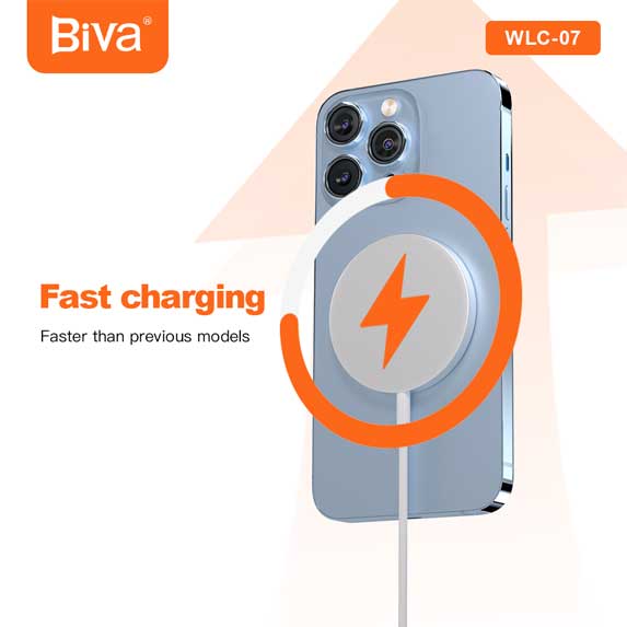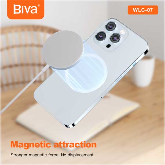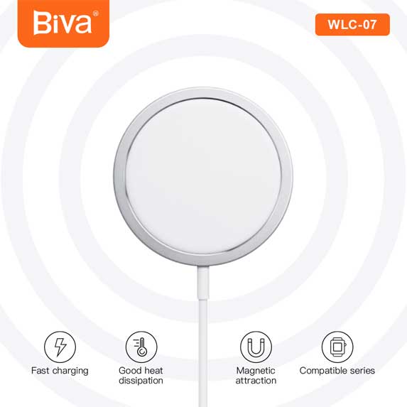 شارژر وایرلس Biva WLC-07 یک پد شارژ سریع با قابلیت اتصال مغناطیسی ارائه می‌دهد. مشخصات فنی و عملکردی این محصول به شرح زیر است.