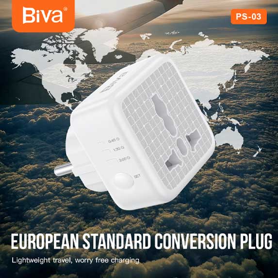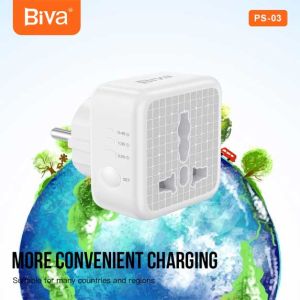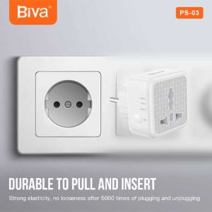 مبدل برق تایمر دار Biva PS-03 یک پریز هوشمند با قابلیت قطع خودکار زمان‌بندی شده برای محافظت از دستگاه‌ها در برابر شارژ بیش از حد ارائه می‌دهد.