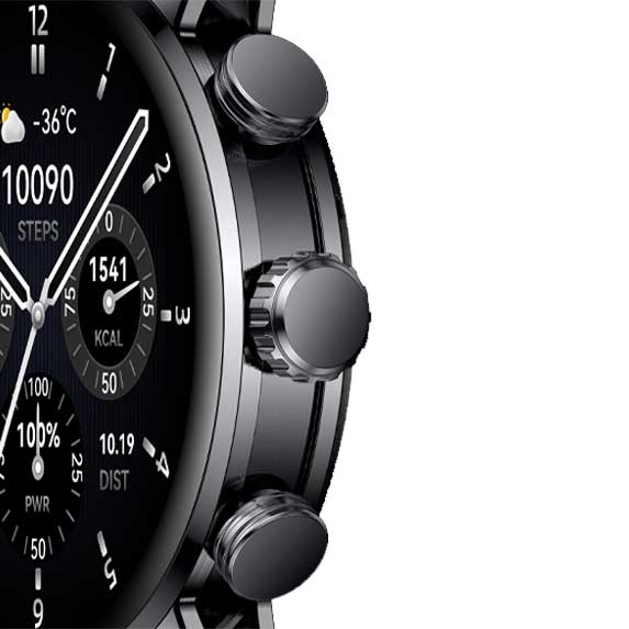 از صفحه نمایشی بهره می برد که با روشنایی اوج 1350 نیت، حتی زیر نور مستقیم خورشید نیز به وضوح قابل مشاهده است. نرخ نوسازی 60 هرتز، تجربه ای روان را برای شما فراهم می کند. این صفحه با وضوح 466 در 466 پیکسل، از شیشه ای با سختی بالا و فرمی 2.5 بعدی ساخته شده است. قابلیت صفحه نمایش همیشه روشن با سبک های انحصاری، امکان دسترسی سریع به اطلاعات را بدون نیاز به لمس دکمه ای فراهم می کند.